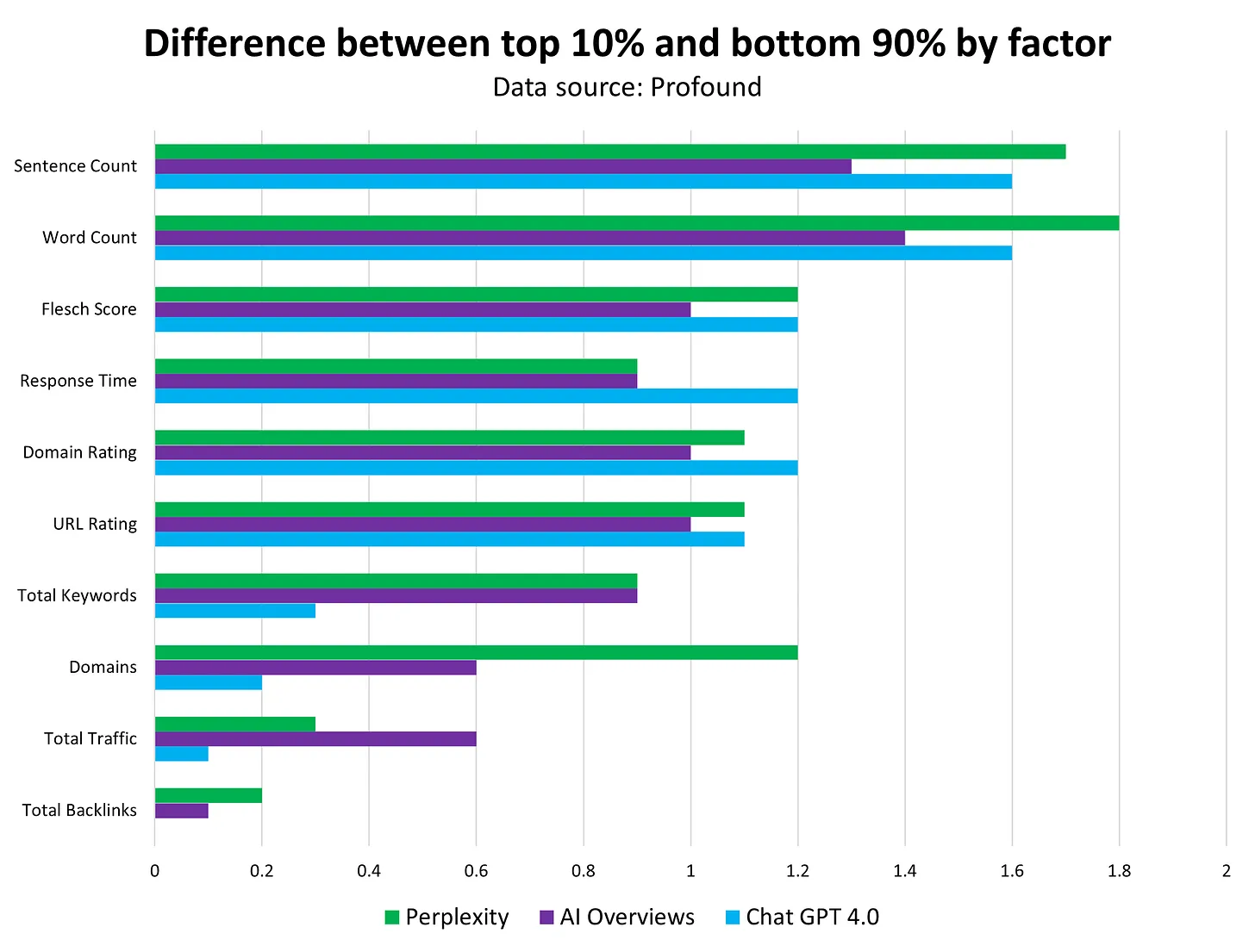 Kevin Indig analysed 7,000 citations across 1,600 URLs in Chat GPT, Perplexity, and AI Overviews. He discovered that the top 10% of the pages cited in Perplexity answers had higher sentence count, word count, and Flesch Score, or readability score.